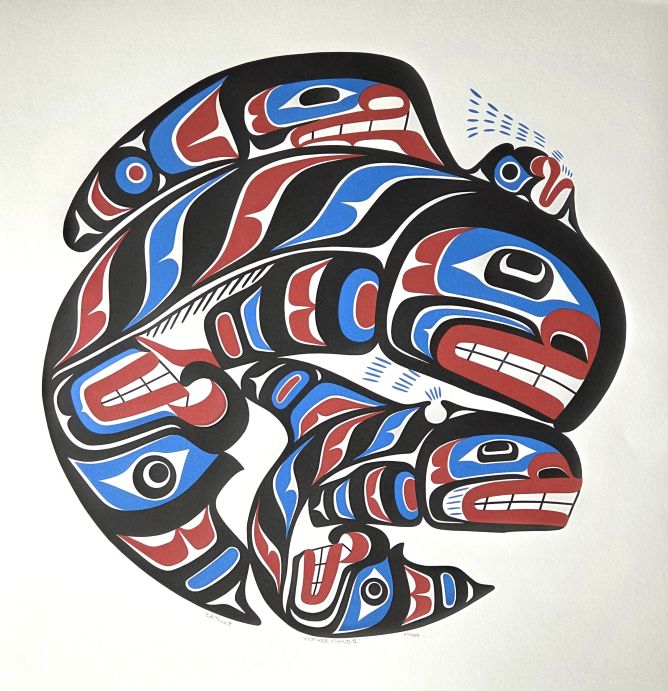 As a member of the Fort Rupert band of the Kwagiulth, he spent roughly four years carving at Thunderbird Park at the Royal BC Museum in Victoria in the early 1960s. At Thunderbird Park, Eugene was under the tutelage of Mungo Martin, as well as Henry and Tony Hunt. He put his artwork on hold for the next twenty-five years during which time he became a commercial fisherman. In 1987, Eugene resumed carving and also took up painting.