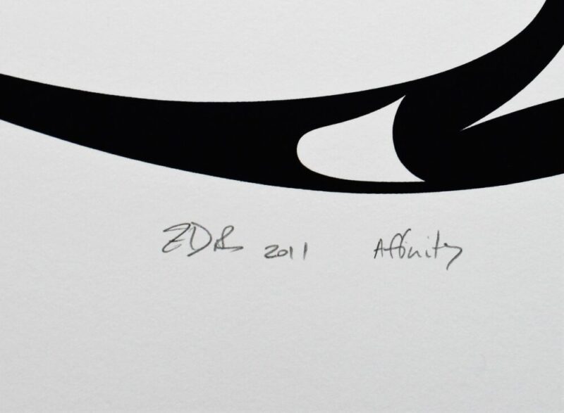 This limited edition silk screen print titled “Affinity” by Francis Dick was hand produced by the screen printing process. It is the only limited edition printing of this design. The artist has inspected and signed each copy in the edition. All trial copies of this edition have been destroyed and the printing stencils obliterated.