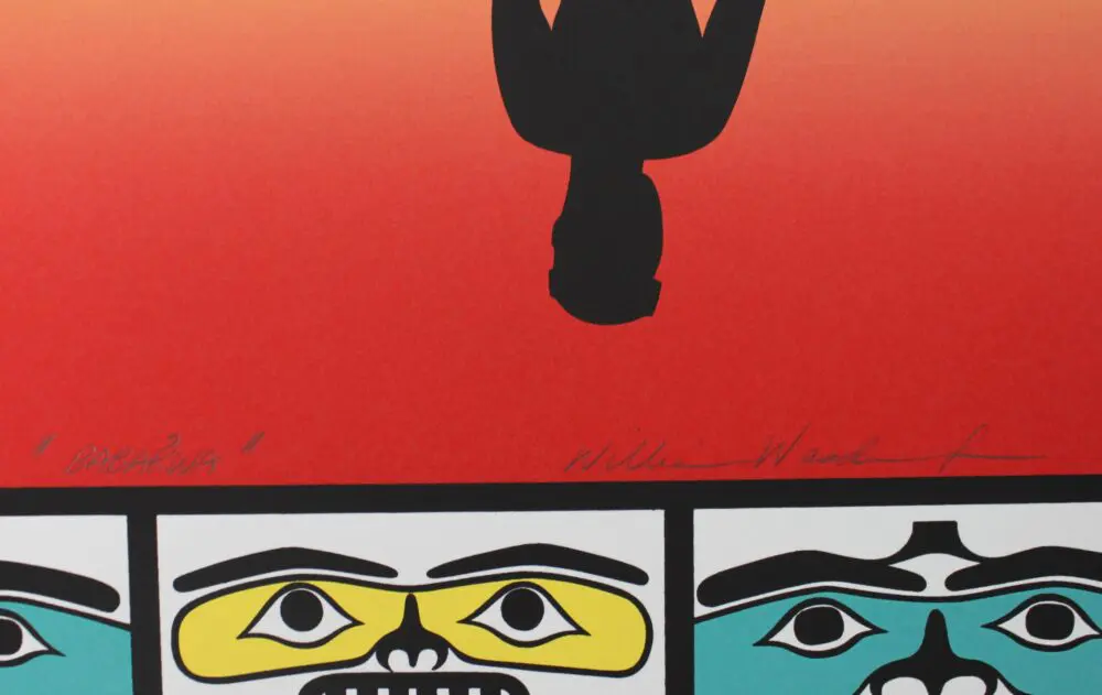 This limited edition silk screen print titled “Babakwa” by William Wasden Jr. was hand produced by the screen printing process. It is the only limited edition printing of this design. The artist has inspected and signed each copy in the edition. All trial copies of this edition have been destroyed and the printing stencils obliterated.