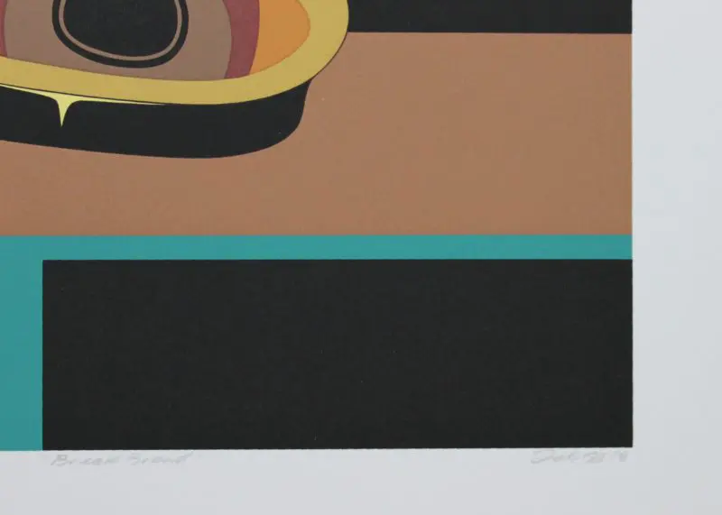 This limited edition silk screen print titled “Break Bread” by Mark Prestonwas hand produced by the screen printing process. It is the only limited edition printing of this design. The artist has inspected and signed each copy in the edition. The printer has destroyed all trial copies and obliterated the printing stencils.