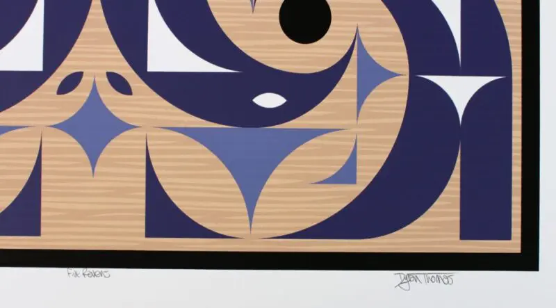 This limited edition silk screen print titled “Five Ravens” by Dylan Thomas was hand produced by the screen printing process. It is the only limited edition printing of this design. The artist has inspected and signed each copy in the edition. All trial copies of this edition have been destroyed and the printing stencils obliterated.