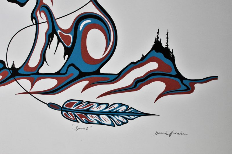 This limited edition silk screen print titled “Spirit” by Derek Heaton was hand produced by the screen printing process. It is the only limited edition printing of this design. The artist has inspected and signed each copy in the edition. All trial copies of this edition have been destroyed and the printing stencils obliterated.