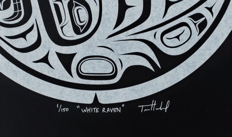 White Raven is Trevor Husband’s first limited edition print. It shows the legend of Raven, who, according to oral tradition, was originally white and stole the sun and the moon to bring light to the world.